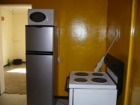 共同ではありますが、冷蔵庫と電子レンジがあるので便利です。コンロは電気コンロです。この国では、ガスは少ない様です。